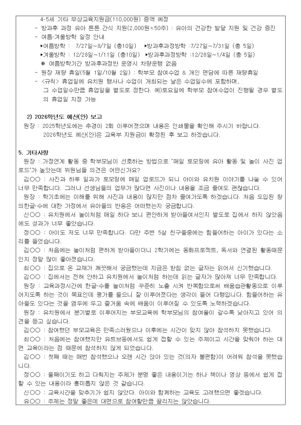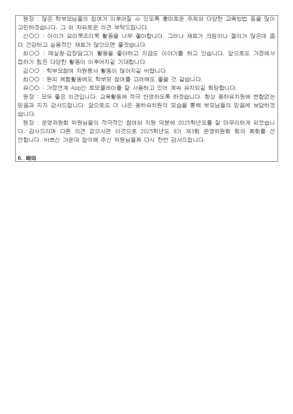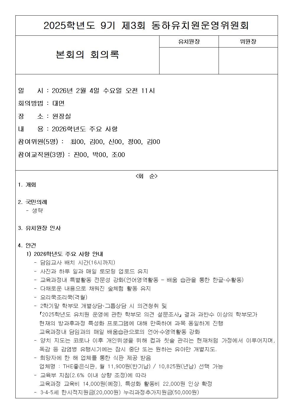 2025학년도 제9기 동하유치원운영위원회 제3회 회의록