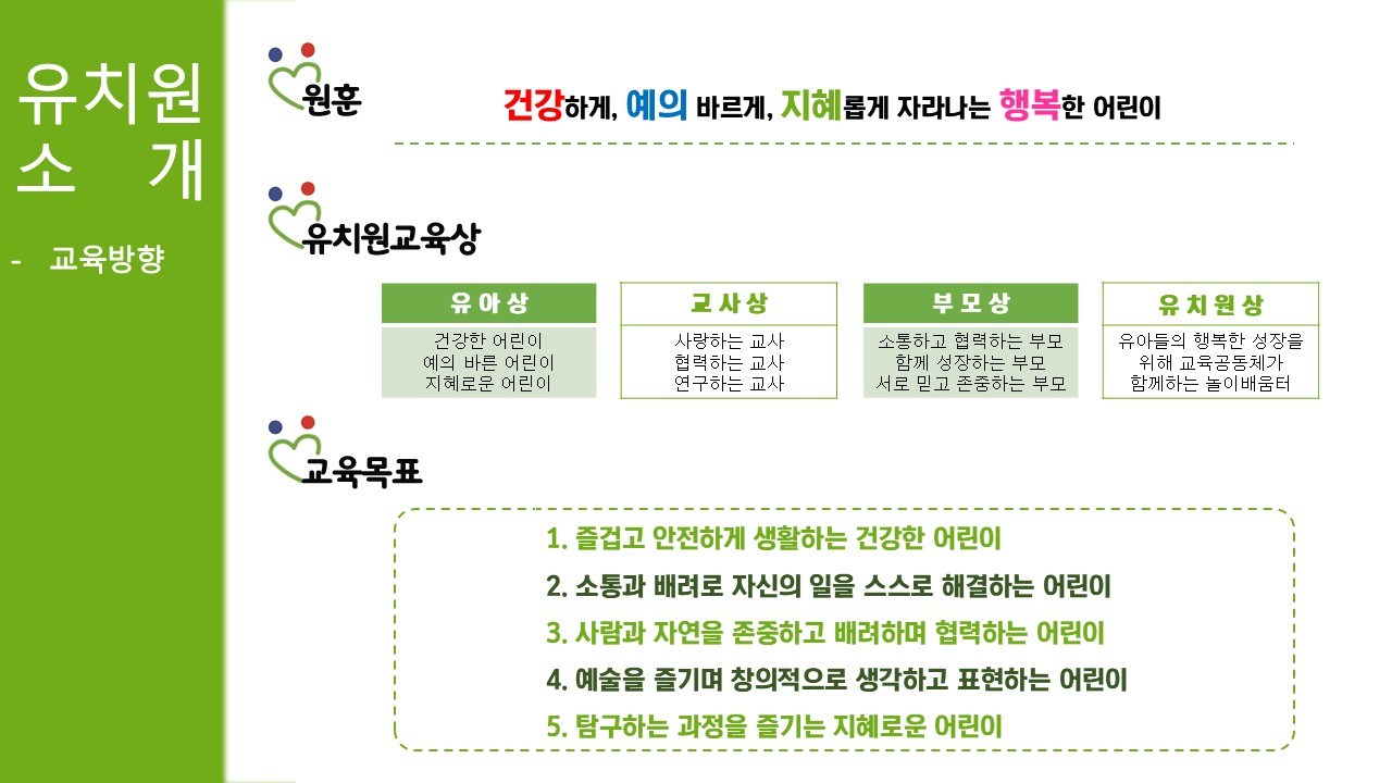 “행복한 어린이들이 함께하는 동하유치원에 오신것을 진심으로 환영합니다.”
